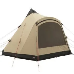 Das Trapper Chief bietet Platz für 10 Personen bzw. 6 Personen, wenn das optionale Innenzelt verwendet wird. Es verfügt über einen bogenförmigen Haupteingang bestehend aus einer flachen Tür mit großem Netzfenster und Vorhang. Dieser bietet einen einfachen Zugang. Durch seine Form wird sichergestellt, dass die großzügige Kopffreiheit, die durch die Leichtmetallstange in der Mitte entsteht, auch bis zum Eingang reicht. Das Tipi-Zelt verfügt außerdem über eine Ofenrohrdurchführung und einen Reißverschluss vom Eingang zur Mittelstange, sodass der Zeltboden bei der Nutzung eines Zeltofens zur Seite geklappt werden kann. Belüftungsöffnungen im unteren Zeltbereich unterstützen die Luftzufuhr. Die praktische Internal Apex Vent Control lässt sich einfach im Zeltinneren verstellen.