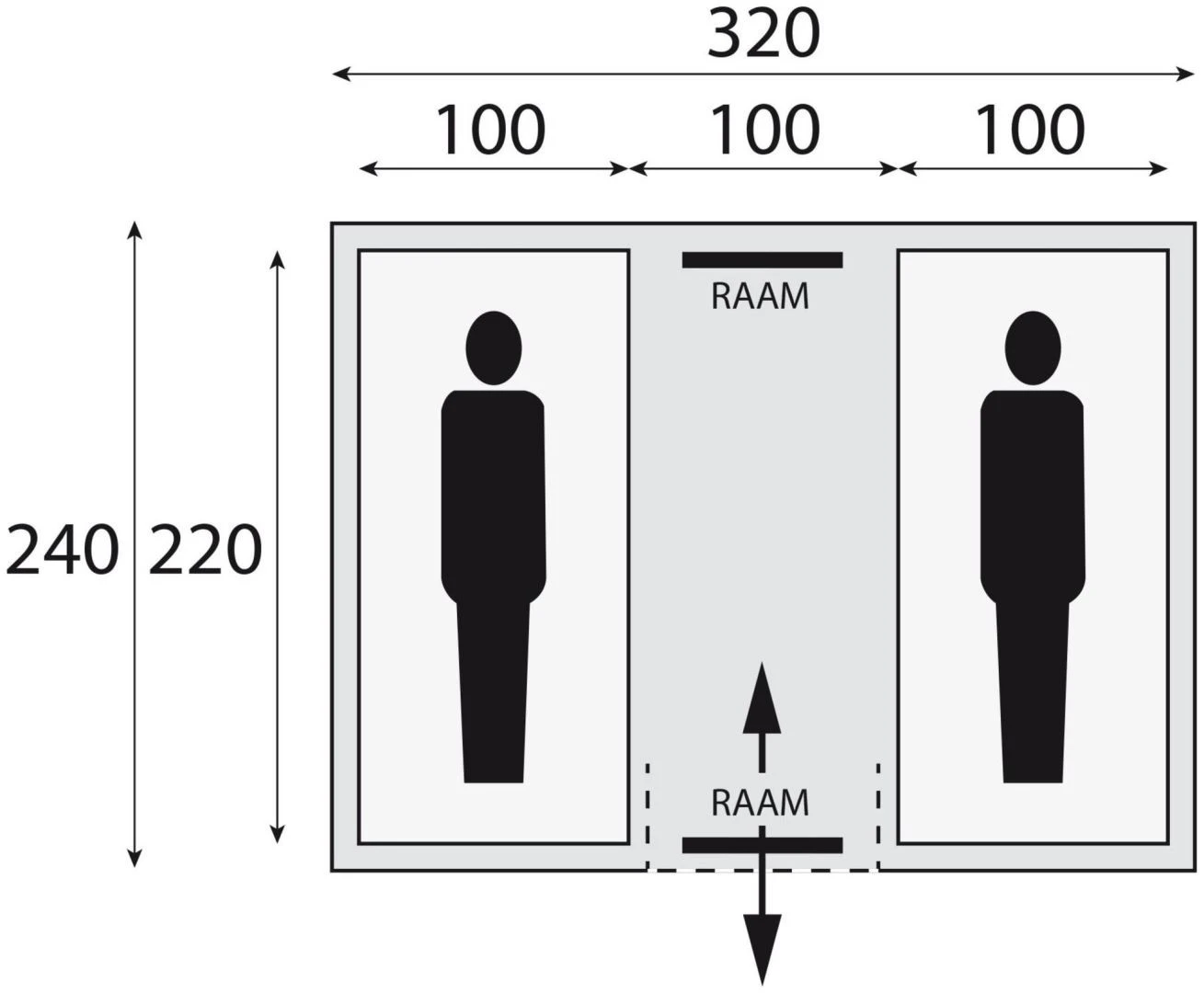| Außenzelt | 100% Polyester honeycomb, Wassersäule 4000 mm |