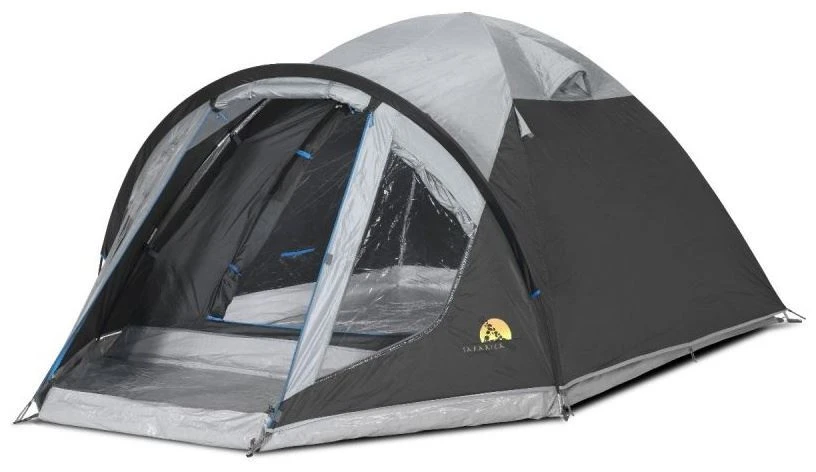 De Kenia 190 koepeltent van Safarica is geschikt voor 3 personen. De compacte voorvouw heeft twee afsluitbare ramen. De tent is voorzien van een permanent ventilatiesysteem. Zo bestaat de binnentent uit ventilerend polyamide en een PE-grondzeil. Het buitendoek is gemaakt van honeycomb polyester. De tent kunt is opzetten met de stevige Fiberglas boogstokken. Tot slot wordt de tent geleverd inclusief haringen en scheerlijnen.