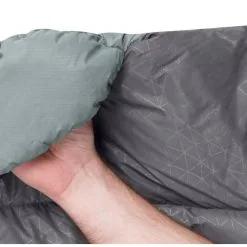 De 750+ Loft ULTRA-DRY Down zorgt voor de ideale combinatie tussen warmte, gewicht en pakvolume. Als het tijdens de nacht frisser wordt, kan je de Quilt helemaal als een coconnetje vastmaken aan je slaapmat met drukknopen en een aantrekkoord. Zo blijf je lekker warm en creëer je een soort slaapzak. The premium 750+ Loft down is super warm en compact en de ULTRA-DRY waterafstotende behandeling beschermt de dons tegen vocht en condensatie. Deze dons behoudt 60% beter zijn Loft, absorbeert 30% minder warmte en droogt 60% sneller dan gelijkaardige dons zonder behandeling. Om je nog beter te beschermen tegen vocht is de buitenlaag gemaakt van 20D waterproof Nylon NanoShell fabric. Deze buitenstof houdt vocht buiten en is goed ademend om de condensatie van transpiratie naar buiten af te voeren. Voor outdoor enthousiastelingen die liever niet in hokjes denken, bieden de Cinder quilts de nodige vrijheid en moduleerbaarheid.
