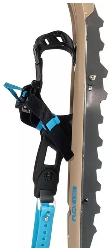 An excellent all-around Day Hiking category snowshoe for anyone from the beginner to the intermediate snowshoer. The composite deck of the Flex TRK comes in a 22” and 24” length and features our Flex Tail™ technology to absorb shock and promote a natural heel to toe roll when walking. The Tubbs toe crampon and traction rails provide ample grip on uphill, downhill and sidehill terrain while the ActiveLift™ 16° heel lift reduces calf fatigue on steeper ascents.