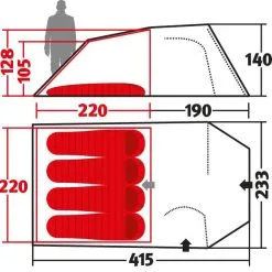 | Innenzelt | 100% atmungsaktiv Polyester 70d |