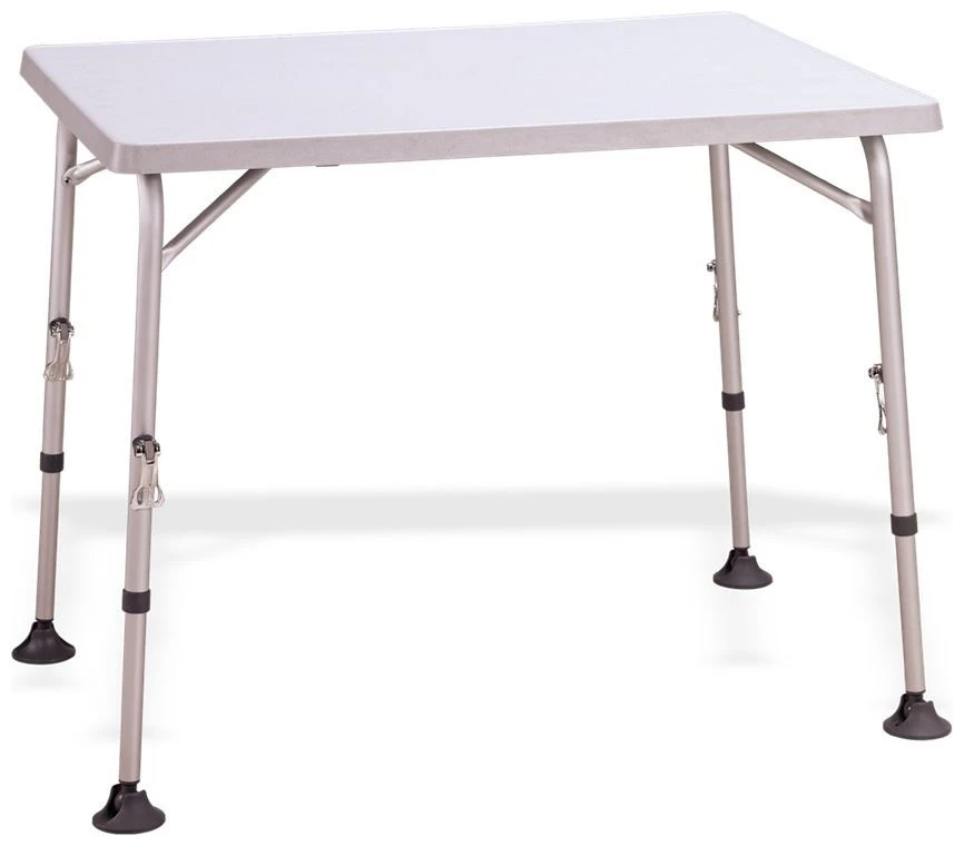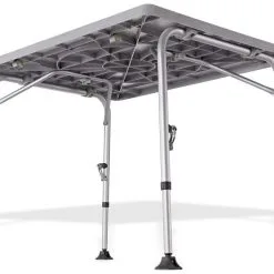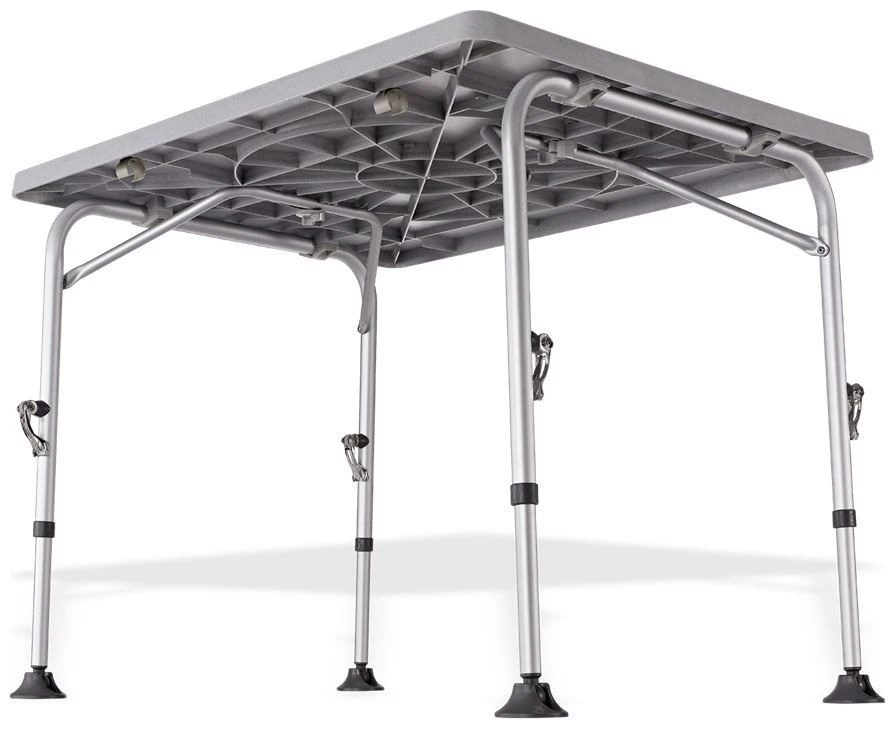 Solide, unverwüstlich und leicht zu transportieren, dass sind die Merkmale des verbesserten Campstar Tisches. Um eine höhere Standfestigkeit zu erreichen, haben wir nun auch unseren Bestseller mit dem stabilen 25 mm Hartaluminium Rahmen versehen. Er steht nun noch stabiler und kann mit den schnell einstellbaren Beinen innerhalb von Sekunden jeder Unebenheit angepasst werden. Der Tisch bietet Platz für bis zu 4 Personen.